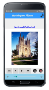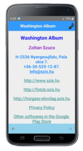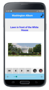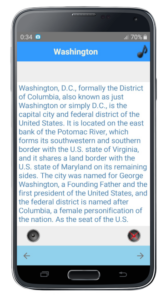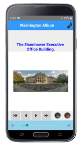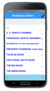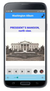 An application featuring the city of Washington (the capital of the United States) with past engravings, text, and contemporary photographs (77 images in total).