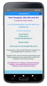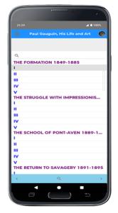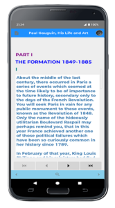 The app is based on the book “Paul Gauguin, His Life and Art”. The original work was written by John Gould Fletcher and originally published in 1921.