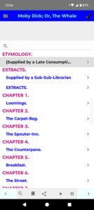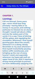 – Access Moby Dick in both e-book and audiobook formats in one place. Text-to-speech (TTS).