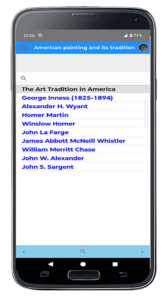 The Tradition of American Painting is a modern, digital reinterpretation of John C. Van Dyke’s classic work, *American Painting and Its Tradition* (1919). The app aims to present the history and development of American painting—from the landscapes of the Hudson River School to the Impressionist movements—in a visually appealing, easy-to-use interface.
